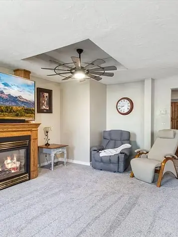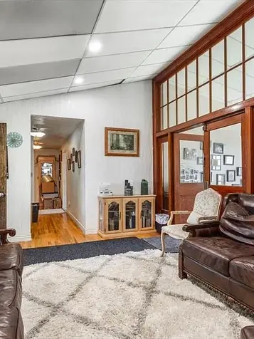 Own a Piece of History with Endless Possibilities! This beautifully converted former Coltman Schoolhouse blends classic charm with modern comfort on over 2 scenic acres. With a durable metal roof and brick exterior, this unique home offers a spacious open-concept living area featuring a stunning island kitchen, cozy fireplace, and inviting dining space. Six generous bedrooms and five remodeled bathrooms provide both space and style. A preserved classroom now serves as a charming preschool with original hardwood floors, vintage chalkboard, and its own bathroom. The 64x47 gym, with separate entrance, has been transformed into a bright gymnastics and dance studio—ideal for classes, events, or celebrations. The basement includes a partially finished apartment with a kitchen, living room, bedroom, bath, and laundry—bringing in $1,200/month in rental income. You'll also enjoy abundant attic and basement storage. Outside, relax under mature trees, enjoy the lush lawn, fire pit, mountain views, and water rights. Ideal as a home, business, or income property—this historic gem won't last!